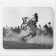 Um vaqueiro do rodeio que monta um bronc bucking.
