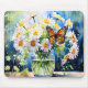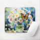 Linda cobertura de rato de flor com uma bela ilustração de um vaso de vidro de flores com uma Borboleta Monarca sentada numa das margaridas.