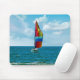 Navio de vela com um marco-íris em água azul e fundo do céu de verão.