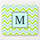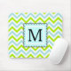 Mousepad Verde & monograma azul do costume de Chevron do