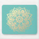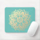 Um mousepad com um belo design de flor de mandala em tom dourado sobre um fundo verde de cor. Este chic e elegante mouse pad é perfeito para uma mulher ou menina adolescente que gosta de mandalas florais mínimas e da cor rosa.