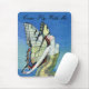 Este tapete do rato para seu computador tem uma fada bonita em um vestido dourado com a asa da borboleta de monarca que olha acima no céu azul. Personalize a mosca vinda comigo texto com o modelo.