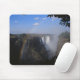 Impressões e presentes horizontais de Victoria Falls apresentam uma bela fotografia colorida de Victoria Falls na África, com um arco-íris sendo lançado em um brilhante céu azul, tirado por Kurt Keller com uma câmera de 35 mm no Zimbábue enquanto estava em um Safari Africano.