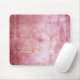 Este mouse pad apresenta um design de fundo rosa, com aspecto de vintage, com texto e uma flor.