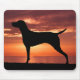 Sua raça favorita do cão mostrada em silhueta por um por do sol lindo do Pacífico do tom do Sienna.