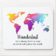 Mousepad Wanderlust/design colorido do mapa do mundo para