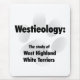 Ologia é o estudo. Westieology é o estudo de West Highland White Terriers. Coloque este design exclusivo de cão AKC Breed em uma t-shirt, caneca, cartão, mousepad, chaveiro, botão, imã.