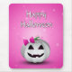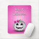Feliz ilustração do Dia das Bruxas para as giras que contêm uma abóbora branca com um arco rosa sobre fundo de um livro rosa.