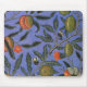 William Morris Pomegranate Wallpaper Pattern, Fruta Azul - Este design floral é um padrão muito colorido de papel de parede projetado em 1865-66 pelo famoso designer de papel de parede William Morris. O impressão botânico tem um fundo azul brilhante e os romãs verdes e vermelhos se entrelaçam no design. Folhas verdes e caules vão para o lado do impressão floral.