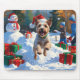 Mousepad Wire Fox Terrier Correndo na Neve com Chapéu de Na