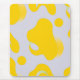 This mousepad features a lively pattern of organic yellow shapes scattered across a clean white background, creating a playful yet contemporary abstract aesthetic.