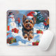 Mousepad Yorkshire Terrier em neve com chapéu de Natal