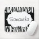 Um teste padrão preto e branco à moda da zebra é caracterizado neste mousepad personalizado.