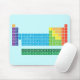 Mousepad com mesa periódica dos elementos, com cada grupo de elementos marcado em cores arco-íris.