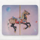 Um dramático cavalo carrossel preto com armadilhas em tons joias de azul real, vermelho profundo, rochas e acentuado com rosetas cor-de-rosa esculpidas. Sinta-se livre para personalizar sua compra para torná-la sua.
