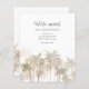 Celebre sua nova casa enquanto os avisa sobre seus planos e novos endereços com este orçamento bonito, o modelo de cartão de anúncio movendo palmeira aquarela moderna que você pode personalizar facilmente.