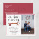 Deixe seus amigos e familiares saberem seu novo endereço com este cartão postal de anúncio de mudança rústico. Este modelo apresenta uma foto da família para você personalizar e uma chave vermelha vintage com brilhos dourados. Texto totalmente personalizável, muito simples de editar com seus detalhes pessoais.