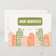 Padrão de estilo de desenho animado com edifícios retrorreflectores laranja e verdes para um novo anúncio de endereço muito exclusivo. ★ Por favor, verifique a coleção correspondente para COORDENAR ITENS.¨¨¨.