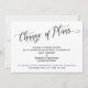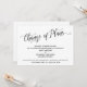 A distinção deste conjunto se deve à fonte de texto elaborada e com curvas usada para as frases de destaque. Caso você precise informar aos seus convidados que o casamento foi adiado, este cartão oferece uma opção elegante. Nesta peça, a fonte caligráfica foi usada para criar um gráfico que representa as palavras "Mudança de planos". Use os campos do modelo para adicionar seus detalhes pessoais e tornar este design único. O fundo pode ser alterado para qualquer cor de sua preferência. Por favor, entre em contato para solicitações especiais ou para obter ajuda na personalização. // 98 //