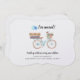 Em movimento na minha bicicleta, anúncio de mudança de endereço com cartão apresentando uma bicicleta feminina em aquarela com um cesto de flores e bagagens no porta-malas. Perfeito para informar amigos e familiares sobre seu novo endereço e onde provavelmente ocorrerá a festa de inauguração da casa.