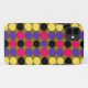 Esta capas de iphone fantástica está coberta de muitas manchas de púrpura, cor-de-rosa e preto dispostas em filas separadas por áreas de verde-escuro. Este abstrato fantástico me traz à mente uma parede coberta de placas de tinta depois de um jogo de pinball.