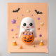 Muito bonito de se assustar - Poster Fantasma Adorável ao estilo kawaii com olhos brilhantes e um sorriso amigável, segurando um balde doce de abóbora. Cercados por estrelas pastéis, milho doce e pequenos morcegos, todos em cores brilhantes do Halloween (laranja, roxo, preto, branco). Bonita, divertida e perfeita para as crianças. Alta qualidade, sem desordem de fundo, perfeita para arte em parede.Traga diversão e encanto para o Dia das Bruxas com este poster fantasma "Muito Bonitinho para Estranho". Perfeito para salas de aula, salas de crianças, ou decoração de festas, este fantasma lúdico faz a estação assustadora alegre e alegre. poster de fantasma giro, arte de Kawaii Halloween, muito fofo para assustar, decoração de muro de Halloween, impressão de Halloween, trabalho de arte de fantasma divertido, poster de milho doce, design de Halloween pastel, decorador assustador infantil, fantasma de Halloween