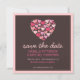 Um coração de muitos corações em tons bonitos de rosa e fúcsia, todos sobre um fundo marrom chocolate rico, faz um ótimo design divertido para um anúncio moderno de salvar a data.