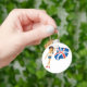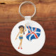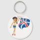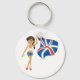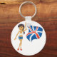 Uma mulher acenando uma bandeira azul branca e vermelha. Esta design parece realmente eficaz nesta Chaveiro