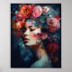 Mulher com Impressão de Arte de Cabeça de Flor Pos