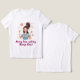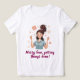 Uma ilustração digital animada de uma jovem com um pão bagunçado, vestindo uma camisa azul casual. Ela irradia confiança e entusiasmo, cercada por corações flutuantes e bolhas de fala. Uma peça perfeita para motivação, positividade e autocapacitação.