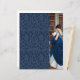 A mulher de vestido azul deixou a festa para a biblioteca.