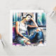 Ai arte representando uma mulher no metrô em um alto-tanque, jeans rasgados esfriando ouvindo música em seus fones de ouvido.