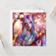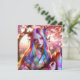 Bonito mulher rosa e púrpura com efeito místico num fundo verde e borboletas cor-de-rosa etéreo. Seu cabelo parece um bonito prisma.