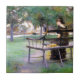 Esta design apresenta uma pintura do artista americano Edwin Austin Abbey (1852-1911). Ela retrata uma jovem com as costas para o espectador sentado num banco de madeira. A mulher está localizada em uma paisagem que parece ser um parque urbano ou jardim. No banco ao lado da jovem está uma pilha de livros, sugerindo que ela vem lendo ou estudando. Talvez ela esteja esperando um amigo.