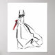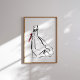 Elegante pintura de linha de tinta de uma mulher coreana no tradicional manicômio segurando uma fita vermelha. Decor cultural minimalista, mas expressivo, para os interiores modernos.