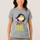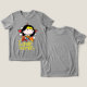 Veja a Mulher Maravilha Chibi voando nas nuvens com seu lasso, soletrando seu nome com sua corda, contra um pano de fundo de uma estrela vermelha.