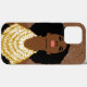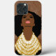Mulher Negra olhando para cima com Dourado colar tribal e cabelo longo e natural. Consciência cultural para o belo Patrimônio Africano.