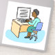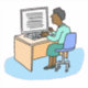 Vinheta mostrando uma mulher negra trabalhando em um escritório em seu computador. Trabalhadora de escritório negra.