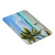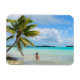 Mulher sob um ímã retangular de palmeiras