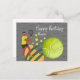 Mulher jogadora de tênis jogando tênis com muitos bolas de tênis em gráfico de texto para cartão de aniversário
