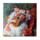 Mulher Tocando Violão (1896) por Pierre Renoir é uma pintura retrato de arte fina do impressionismo vintage. Uma jovem está praticando suas lições em um instrumento musical de cordas. A musicista está tocando música em um violão.