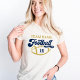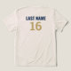 T-Shirt de Futebol Frente e Traseira Personalizada - mostrada no Design de aveia apresenta uma redação de "Futebol" com texto que pode ser personalizado para o nome da equipe, o sobrenome do jogador e o número de camisa. As cores branco suave, azul marinho e dourado podem ser personalizadas.