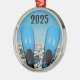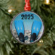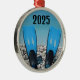 O par de imagens de barbatanas de mergulho em scuba se ergue em uma praia rochosa contra um céu azul e o oceano faz desse ornamento um presente único e divertido para todos os mergulhadores, O ano pode ser mudado facilmente ou removido.