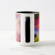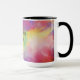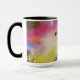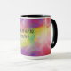 Uma rajada de cor, duas caneca de café tonta com interior preto e alça. "ACORDAR ATÉ CAFÉ"