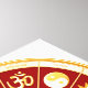 Símbolos Dourados das religiões internacionais rodeiam um mapa mundial. O mandala destaca doze ícones religiosos que expressam a diversidade global de crenças espirituais e harmonia: Baha’i, budismo, cristianismo, confucionismo, hindu, islamismo, jain, judaísmo, nativa espiritual Medicine Wheel, Shinto, Sikh, Taoísmo. ***A cor dourada em design não é metálica.**
