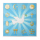 Símbolos Dourados das religiões internacionais rodeiam o Mundo da Paz com uma Dove num fundo de raio azul-céu. O mandala destaca doze ícones religiosos que expressam a diversidade global das crenças espirituais e da harmonia: sentido horário: Cristianismo, Hindu, Taoismo, Baha’i, Budismo, Jain, Shinto, Confúcio, Confúcio, Roda Medicina Nativa Espiritualidade, Judaísmo, Sikh, Islã. *****A cor do ouro não é metálica.***** Veja mais produtos com este design na Categoria Mundo de Paz desta loja. Basta clicar no link da minha loja e rolar. Visite minhas lojas para obter mais designs personalizados e presentes de excelente. World of Faith Store www.zazzle.com/worldoffaith/ Pomegranate Gallery Store www.zazzle.com/pomegranate_gallery/ Cross Stitore www.zazzle.com/cross_stitch/