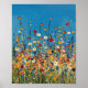 Esta pintura vibrante retrata um campo de flores silvestres sob um céu azul brilhante. Apresentando margaridas, papoilas e outros florins em tons de laranja, rosa, vermelho, azul e branco, o trabalho de arte capta uma cena exuberante e viva. O céu limpo com nuvens brancas lisas adiciona profundidade, enquanto o estilo impressionista com pinceladas ousadas e cores vívidas evoca um dia alegre e ensolarado. Perfeito para iluminar qualquer quarto com um toque da natureza.