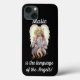 Uma bela imagem de um anjo tocando harpa, com a mensagem "Música é a língua dos anjos!", aparece neste caso do Apple iPhone 8/7. Resistência ao impacto, acesso a todos os portos, comandos e sensores, impressos nos EUA! Um presente de excelente para música e amantes de anjo também!