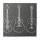 Um na moda, design retrógrado da anca de três guitarras - uma guitarra elétrica e dois guitarras acústicas esboçados em branco contra uma cinza de ressonância. Esta design seria adequada para um violão ou amante de instrumentos musicais.