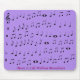 Notas musicais e símbolos sem bares (ou limites) na almofada roxa - as características que dizem, música são vida sem limites